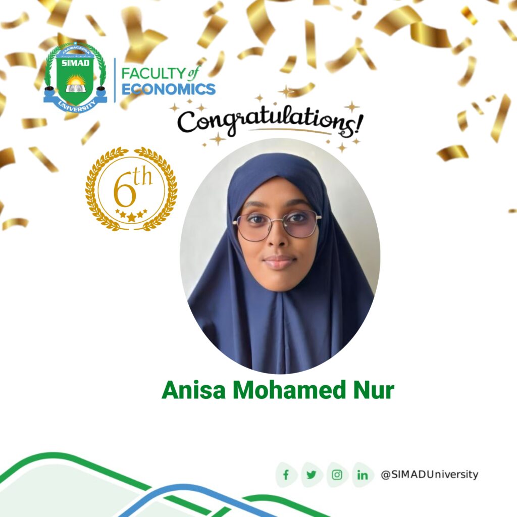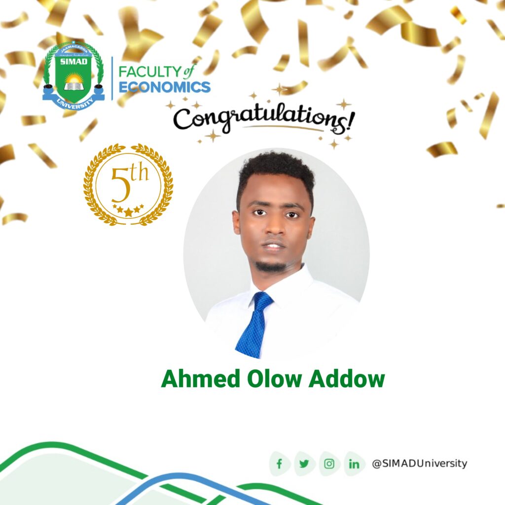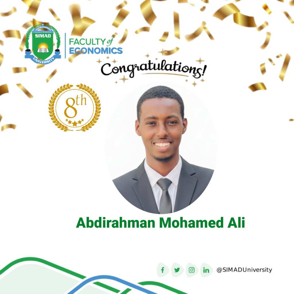 The Faculty of Economics is immensely proud to announce and congratulate our recent graduate, Abdiaziz Mohamed Abdirahman (Class of 2025),