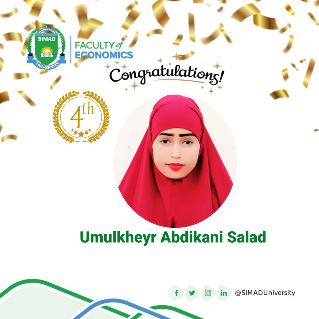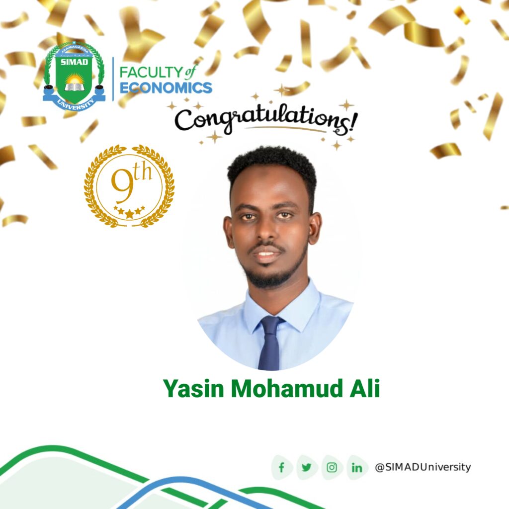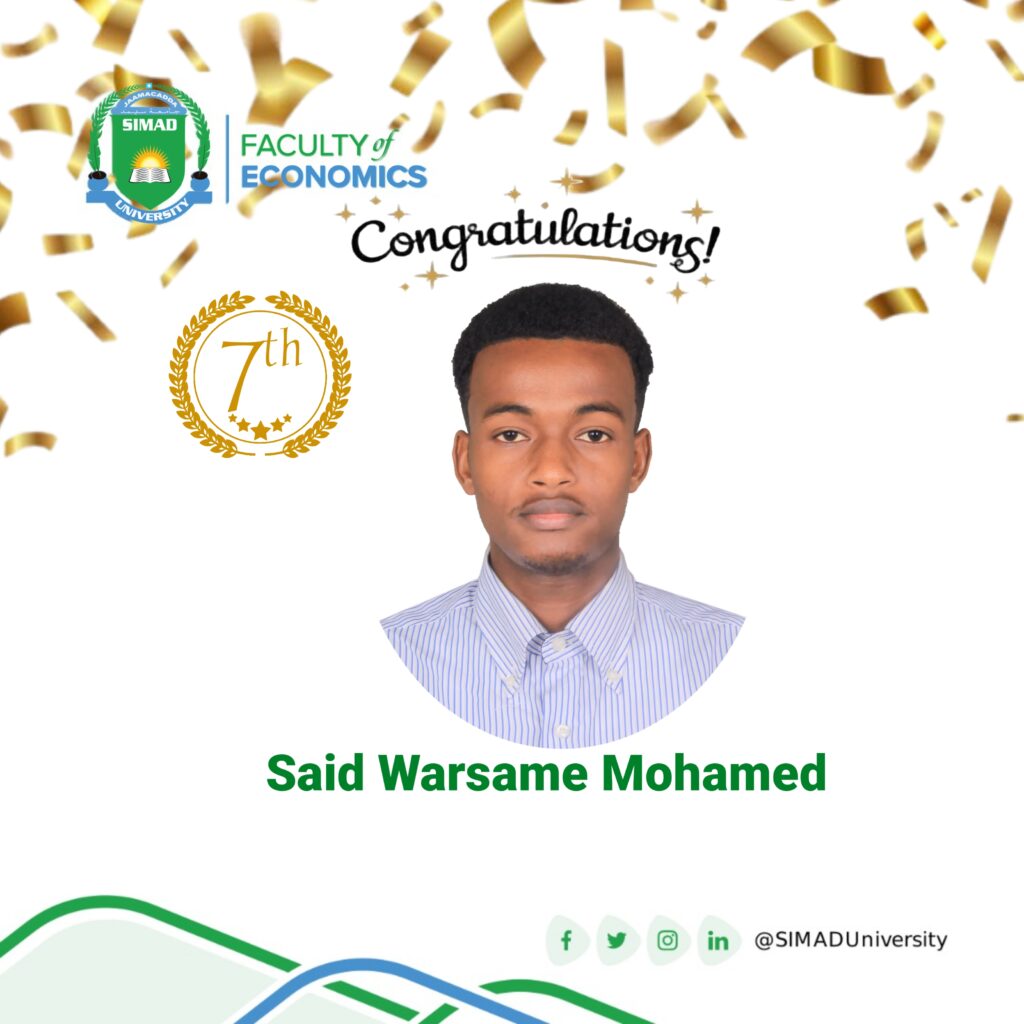The Faculty of Economics is immensely proud to announce and congratulate our recent graduate, Abdiaziz Mohamed Abdirahman (Class of 2025),
