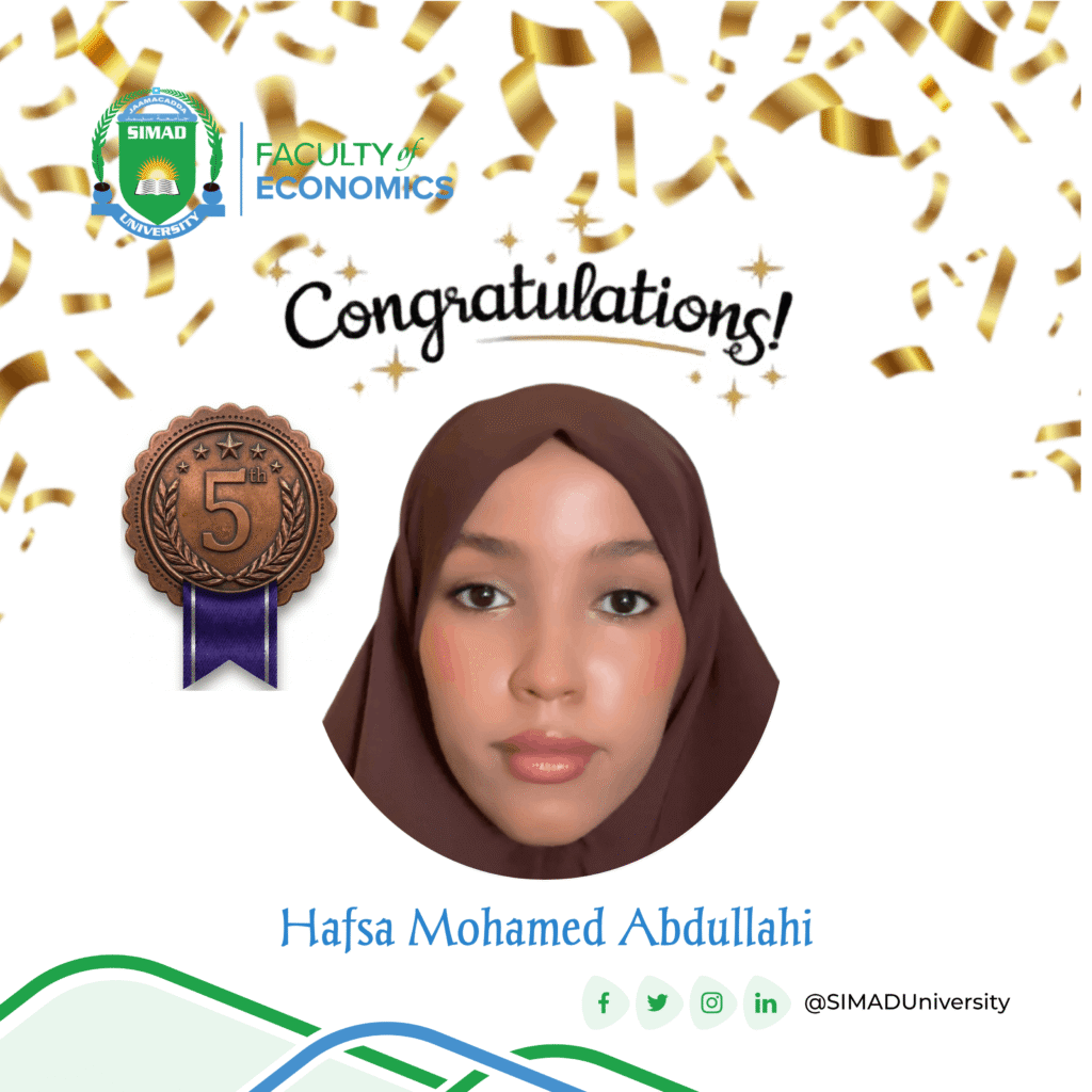 The Faculty of Economics supports student research through the SIMAD Institute for Statistics and Economic Studies (SES). We provide students with resources for research, including access to academic journals, data analysis tools, and faculty mentorship for producing high-quality research.